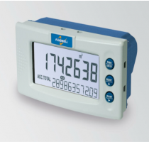 D014 is a DIN Panel mount - Flow rate Indicator / Totalizer with pulse signal output. The D014 is a panel mount indicator / transmitter to display the actual flow rate, total and accumulated total. The total can be reset to zero by pressing the CLEAR button twice. The non-resettable accumulated total can register up to 11 digits and is backed-up in EEPROM memory every minute, just as the running total. Related to the accumulated total, a scaled pulse is generated for re-transmitting the count on the display.