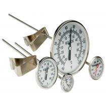 The 100 Series Bimetal Thermometers are designed for accurate, continuous temperature measurement in industrial settings. Constructed with stainless steel cases and stems, they offer excellent durability and resistance to corrosion. The dial face provides clear, precise readings with quick response time. These thermometers are hermetically sealed for moisture protection and come in various stem lengths and dial sizes. Commonly used in piping systems, tanks, and heavy machinery installations.