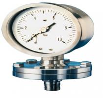Diaphragm pressure gauges have a thin, circular, dished diaphragm mounted between two flanges. One side of this diaphragm is exposed to the fluid. The deformation of the diaphragm caused by the fluid pressure is transmitted to a pointer element used to indicate pressure on a dial face.