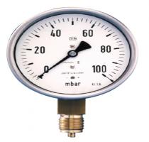 PMK04 series capsule-element pressure gauges are intended to measure small negative and positive pressures of gases and fluids. The measuring element in this type of device consists of two welded diaphragm halves which, when pressurized from the inside, operate a pointer mechanism that indicates the pressure on an aluminum scale. These gauges are also available in brass and stainless steel versions.