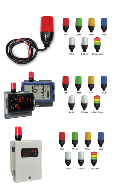 The PDA-LH series light/horn accessory can be connected to select Precision Digital meters to enhance visibility and management of alarm conditions. It is offered in three different light configurations and includes a built-in 85 dB horn.